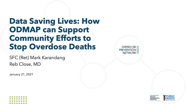 ODMAP is an application that provides near real-time suspected overdose surveillance data across jurisdictions to support public safety and public health efforts to mobilize an immediate response to a sudden increase or spike in overdose events. Please join us at 9 AM Pacific time/12 PM Eastern time for a conversation with Mark Karandang from Northern California HIDTA (High Intensity Drug Trafficking Area)Prevention Initiative to learn about how ODMAP could assist your community to better utilize near real-time data to save lives from overdose. The principles of the system will be explained, as well as show how to explore further in your community. Examples of how local jurisdictions have worked with ODMAP will be presented and there will be an opportunity to ask questions.