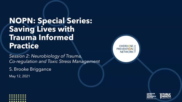 Substance use and trauma are intrinsically linked, with other mental health disorders often co-occurring with substance use disorder. Join us for this second of a three part special webinar series with S. Brooke Briggance, Program Director for the Cypress Resilience Project and a Certified Trainer in Trauma Informed Systems and Practice, about the role a Trauma Informed Practice can play in overdose prevention and how to partner effectively. The topic for this session is: Neurobiology of Trauma, Co-regulation and Toxic Stress Management.