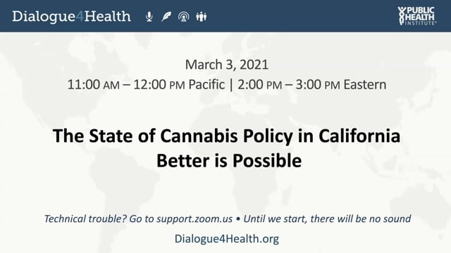 We hope this Web Forum on our scorecards and model ordinance will help guide California cities and counties, as well as other states and countries, in determining how to implement potential best regulatory practices for cannabis to better support public health and social equity.