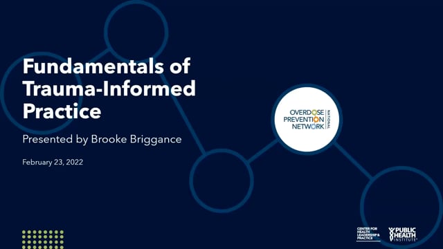 Substance use, trauma and mental health disorders are intrinsically linked, generating a growing demand for trauma-informed care. Join the National Overdose Prevention Network for an interactive discussion on the fundamentals of trauma informed practice and steps you can take to integrate it into your work.